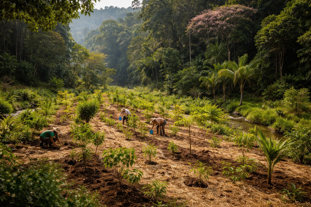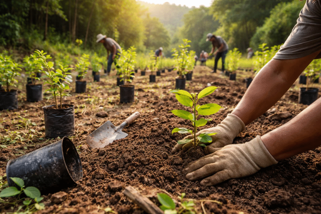 Na prática, reflorestamento pode ocorrer de várias formas, incluindo plantios com espécies nativas ou exóticas — e pode ser conduzido com foco produtivo, climático ou paisagístico. O ponto central é: voltar a ter floresta onde antes havia floresta, sem que isso, por si só, garanta recuperar toda a complexidade ecológica original.