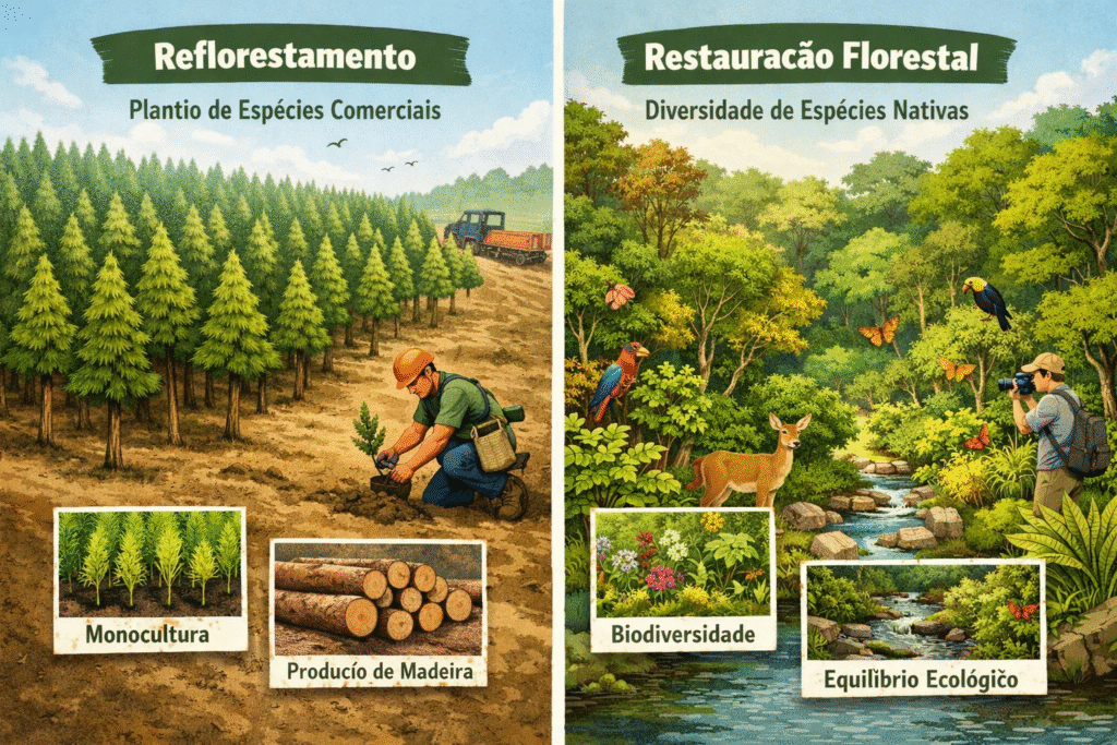 Diferença entre Reflorestamento e Restauração Ecológica